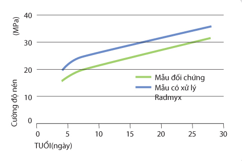 Hình: Việc trộn sẵn Radmyx Concentrate trong bê tông còn giúp gia tăng cường độ của kết cấu rất đáng kể - 17,5%